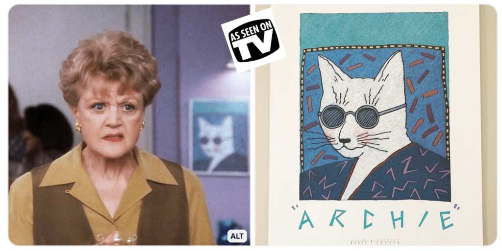 In the early 1980s, our artwork was published and distributed both nationally and internationally by Bruce McGaw Graphics of New York City. While it’s unclear which set director at CBS Television City selected our pieces, two of our images—Archie and Willy—were chosen as set decorations for the popular CBS sitcom Blossom. The posters were prominently featured in the main character’s bedroom and appeared weekly in the show’s opening credit sequence. They were also later seen in background scenes on the long-running mystery series Murder, She Wrote, starring Angela Lansbury.